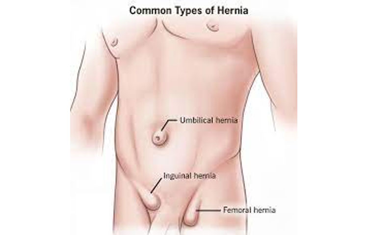 An inguinal hernia occurs when tissue, such as part of the intestine, protrudes through a weak spot in the abdominal muscles. The resulting bulge can be painful, especially when you cough, bend over or lift a heavy object. However, many hernias do not cause pain.