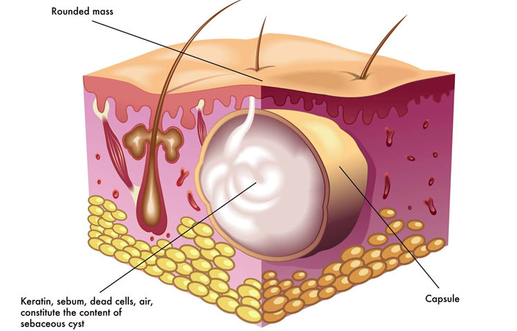 Epidermoid cysts are asymptomatic, dome-shaped lesions that often arise from a ruptured pilosebaceous follicle. The minimal excision technique for epidermoid cyst removal is less invasive than complete surgical excision and does not require suture closure. The procedure is easy to learn, and most physicians experienced in skin surgery can perform the procedure after three to five precepted sessions. It involves making a 2- to 3-mm incision, expressing the cyst contents through compression and extracting the cyst wall through the incision. Gauze or a splatter shield should be used to protect the physician from spraying of cyst contents. The rarity of associated cancer makes histologic evaluation necessary only if unusual findings or clinical suspicion of cancer is present. Inflamed cysts are difficult to e excise, and it is often preferable to postpone excision until inflammation has subsided.